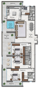 Tower Two offers a selection of 91 spacious apartments, catering to a variety of needs with its diverse range of one, two, and three-bedroom layouts. Similar to Tower One, select apartments in Tower Two also feature panoramic balconies with private Jacuzzis, allowing you to unwind and soak in the stunning city vistas from the privacy of your own home. Whether you're seeking a cozy retreat or a generous family residence, Royal Regency Suites has the perfect living space to suit your needs.