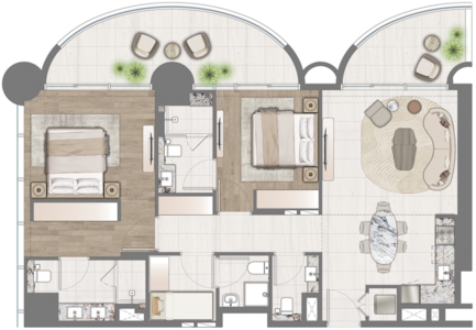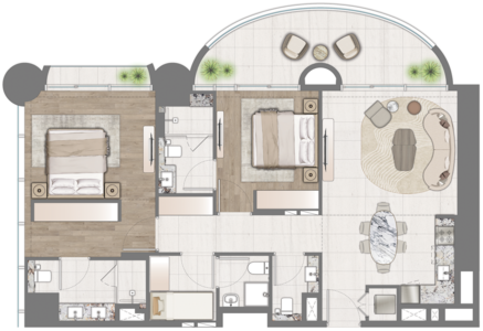 Comprising a total of 453 opulent residences spread across 30 floors, ONE RESIDENCE offers a diverse range of layouts to cater to various lifestyles. From charming studios to spacious one and two-bedroom units, as well as exclusive penthouses, there is a perfect home for everyone within this development.
