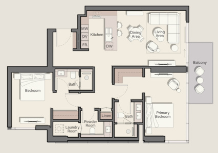 Our meticulously designed apartments come in one, two, and three-bedroom configurations, offering spacious interiors bathed in natural light. The architectural design, inspired by the elegance of flamingos, features softened edges and elongated forms that create a harmonious blend of modern comfort and natural tranquility.