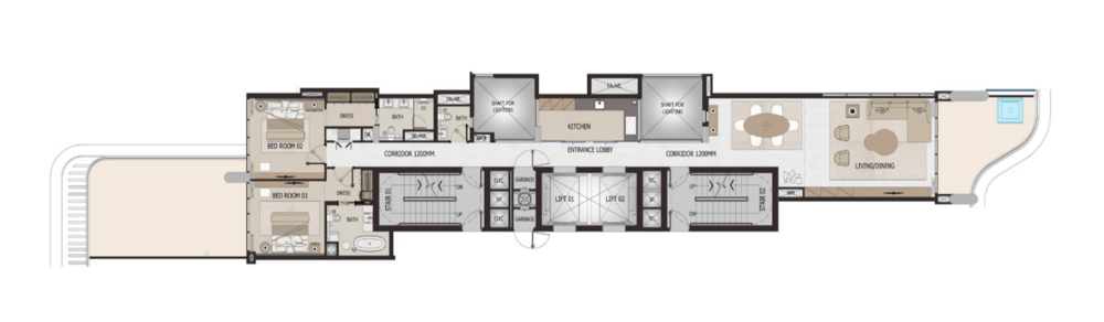 Luxurious Living Spaces: Step inside your meticulously crafted residence and be captivated by the attention to detail. Vitalia residences are designed to maximize comfort and refinement, featuring: